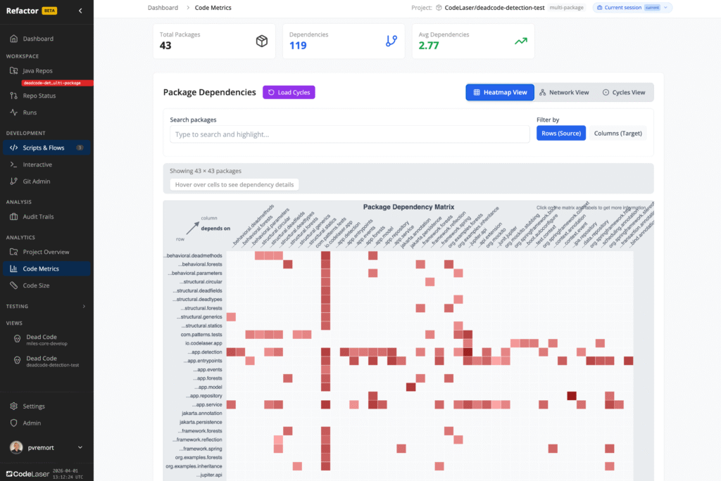 Turn dependencies into actionable data. See where your architecture is coupled and has cycles — and trace exactly why. Use CodeLaser’s dependency optimization and code relocation primitives to optimize your dependency structure.
